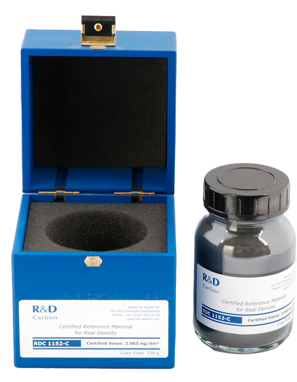 Certified Reference Material to check the accuracy of the results measured by the Real Density apparatus.